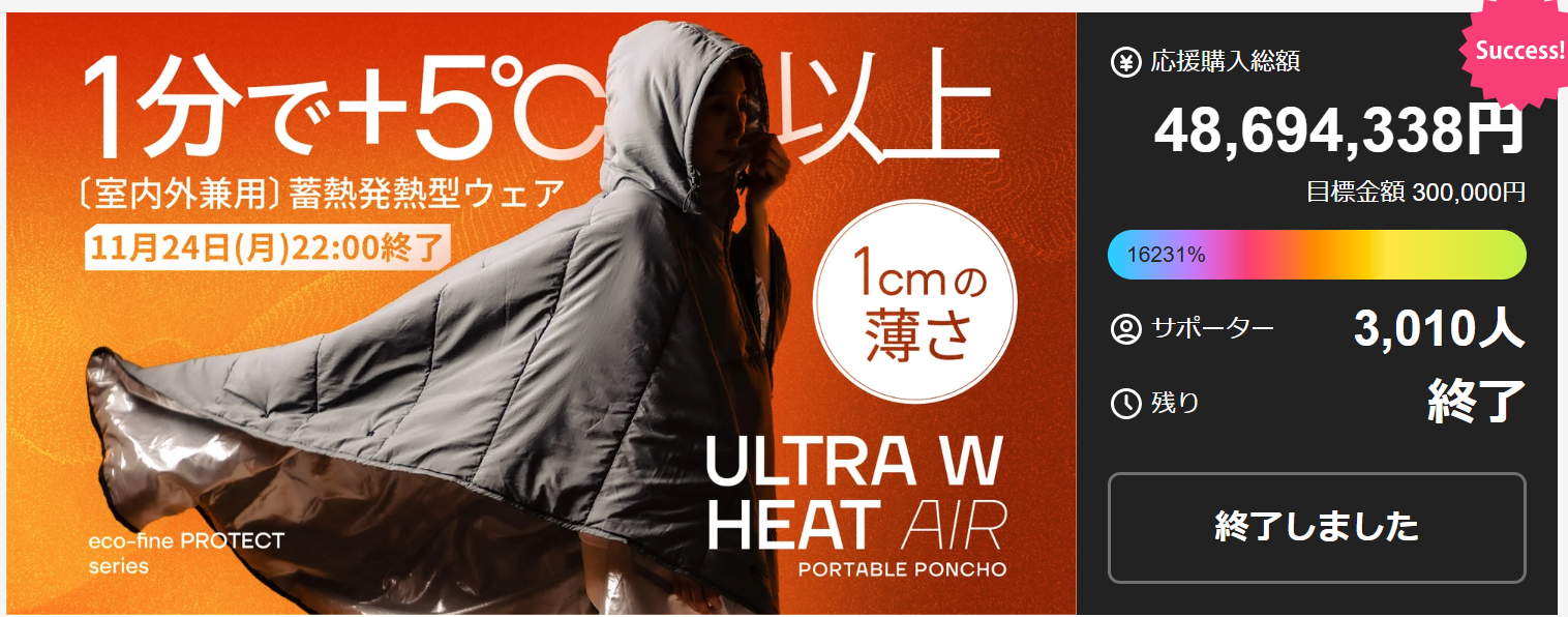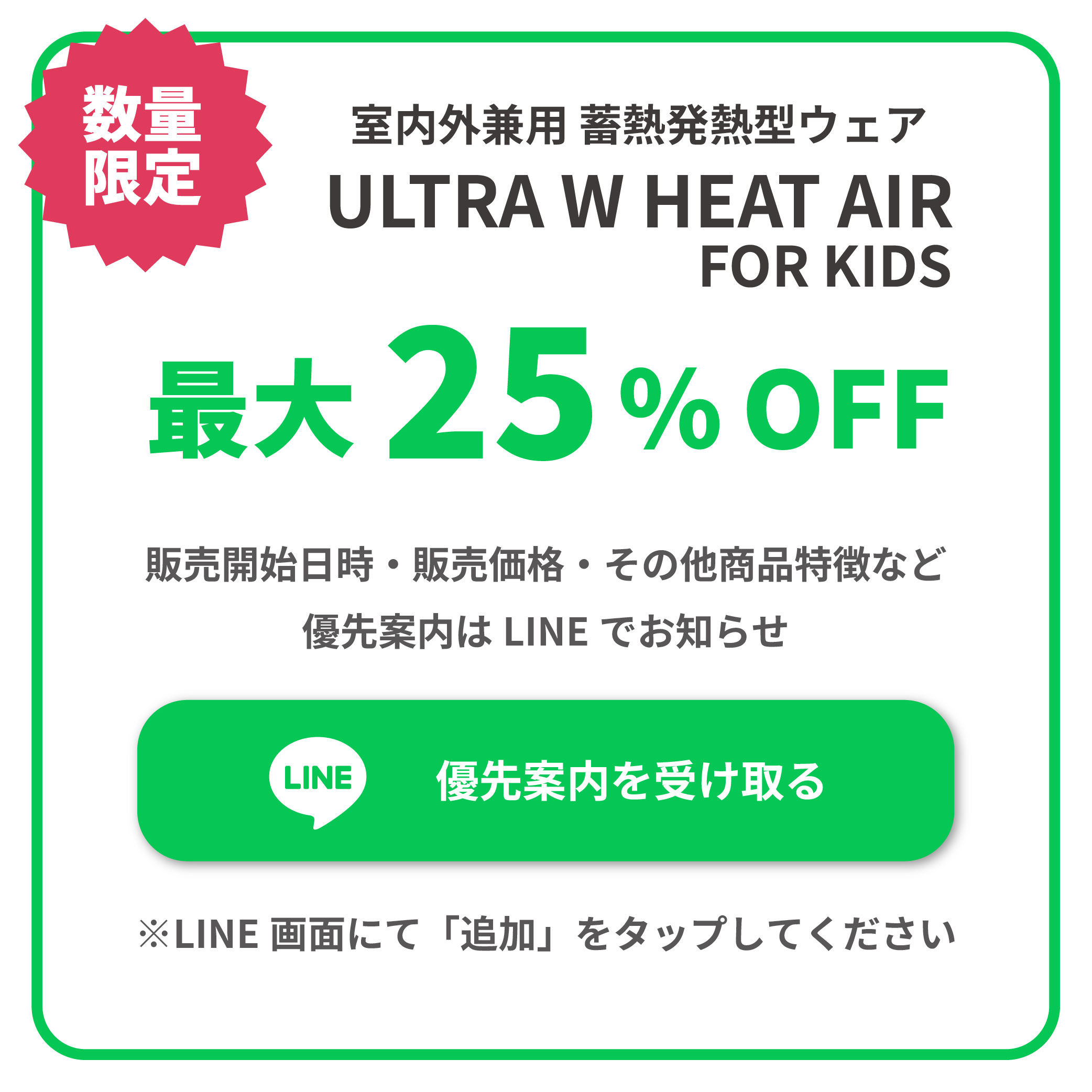 〈〈1月22日(木)9:00開始〉〉お子様向け!室内外で使える「ウルトラWヒートエア」Makuakeサイトにて公開! LINE登録で期間限定500円OFFクーポン発行中!