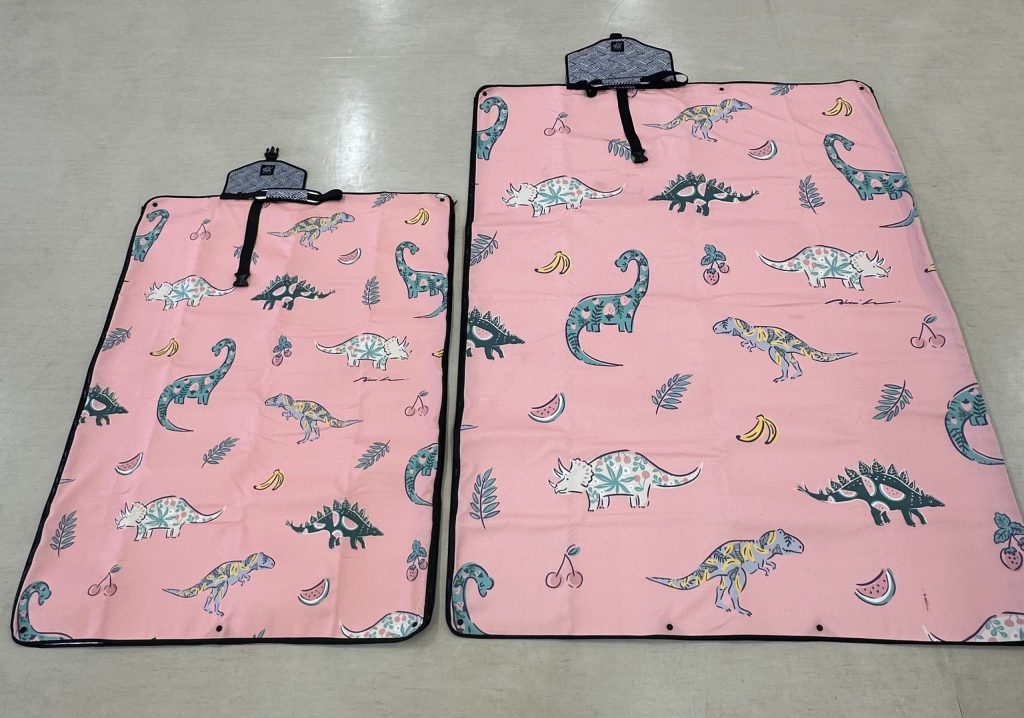 福井のテキスタイルメーカーKAZUMAと、デザイナー・aiMIKIさんがつくる、ただのレジャーシートとはひと味違う“アートな敷物”です。ポップでユーモアのあるデザインは、ピクニックやキャンプ、日常のくつろぎ時間までもワクワクさせてくれます。