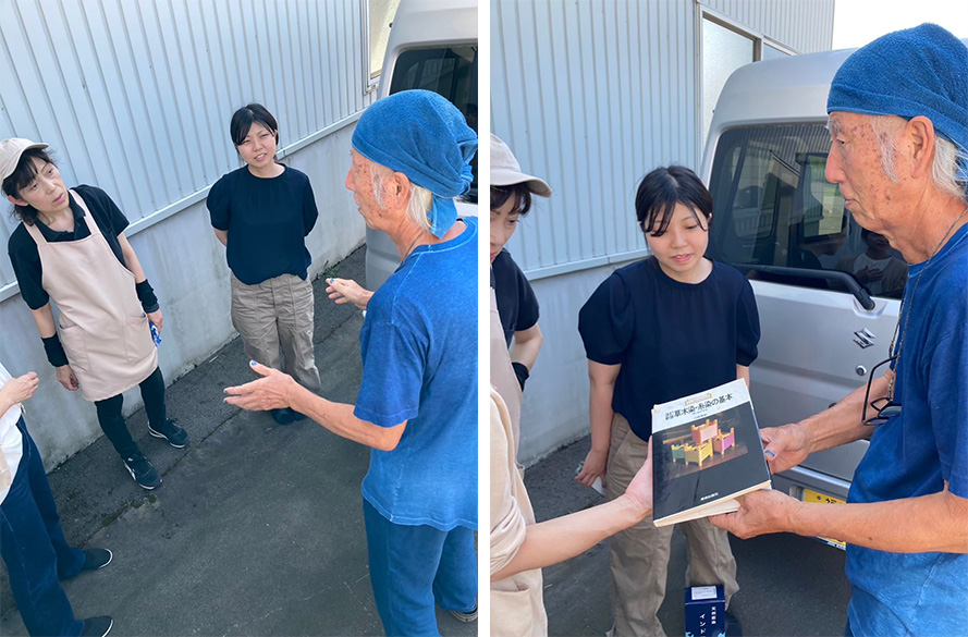 さらに今回は、伝統的な技法である『泥藍(どろあい)』という天然染料について教えていただき、 植物としての藍が、どのようにしてあの深い「福井ブルー」の染料へと姿を変えていくのか。その奥深さを学び、改めて藍という植物の神秘に魅了されたひとときでした。