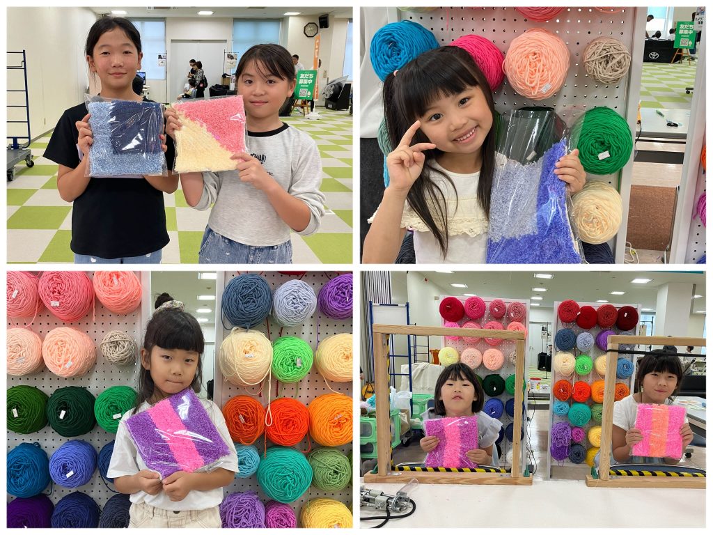 前回も人気だった「タフティング体験」を準備。カラフルな毛糸を使って、世界にひとつだけのオリジナルラグを作ってもらいました。