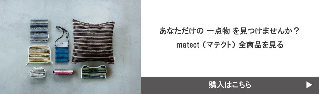 同じ配色でもひとつひとつ違った表情を生み出すのは、使用している生地耳のモケモケとした部分が、ものによって異なるためです。matectの製品は、上質な素材と職人の知恵が詰まった物語を持っている世界で一つ、あなただけの特別な布雑貨なのです。