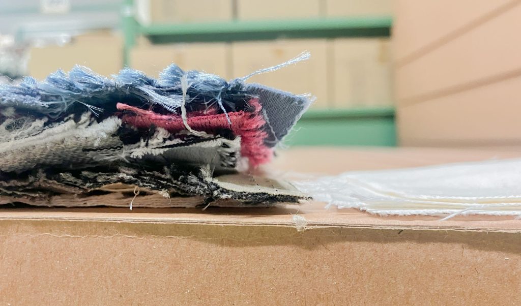 matectの製品作りの始まりは、タクティクス福井さんたちの頑張りでようやく出来上がった「生地耳」を1本1本つなぎことによって生まれた50㎝角の生地からでした。