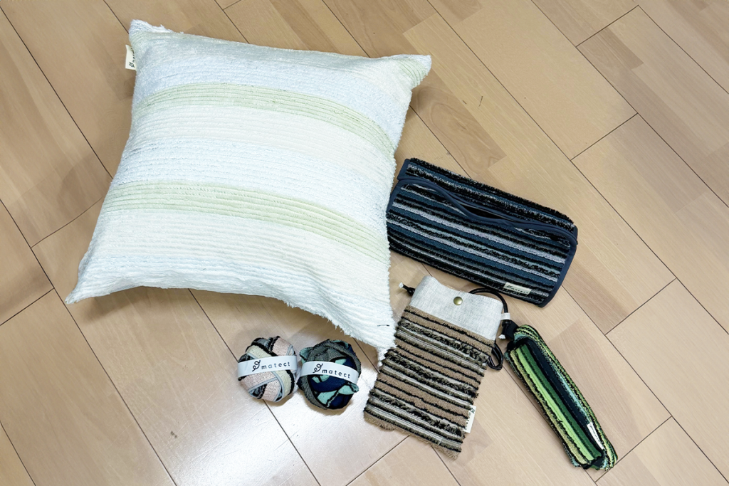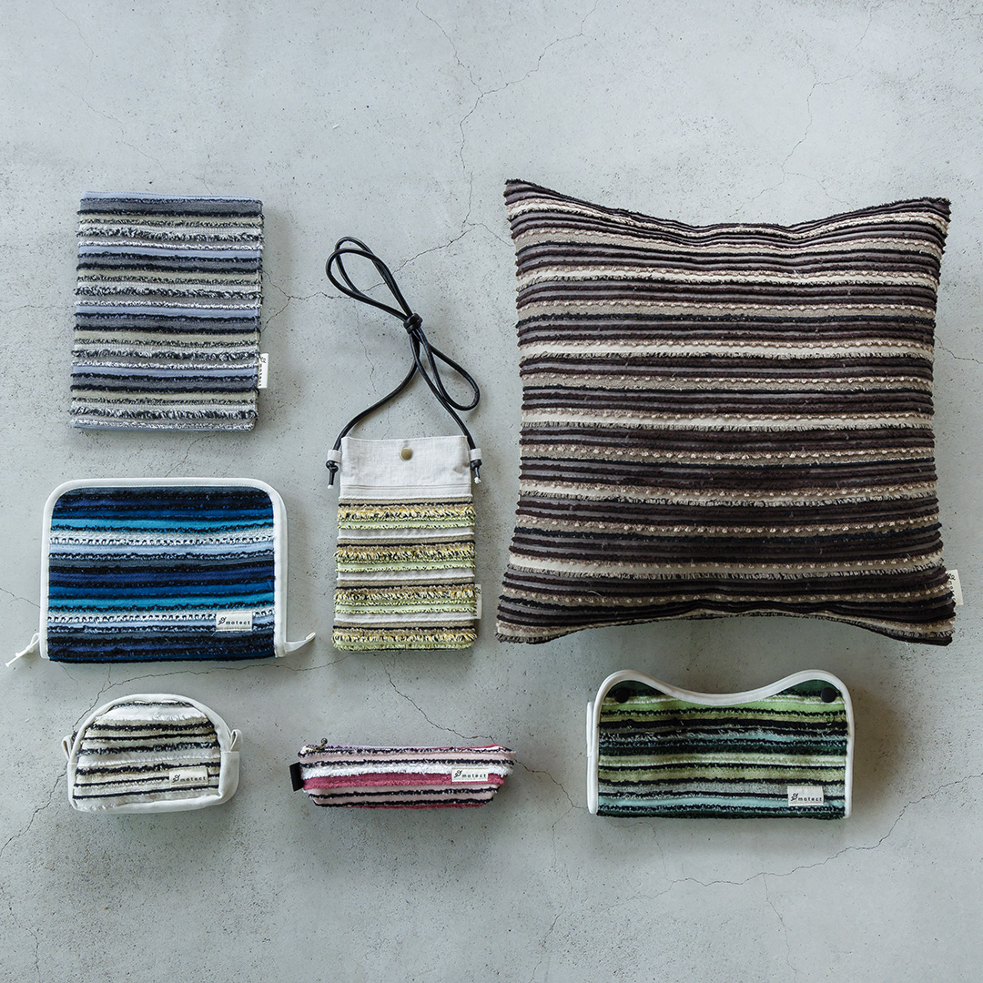 matectは、カーテン製造の過程で生まれる生地の「耳」を活かして生まれたアップサイクルブランドです。本来であれば廃棄されてしまう素材をつなぎ合わせ、新しい価値を持つ製品として生まれ変わらせています。