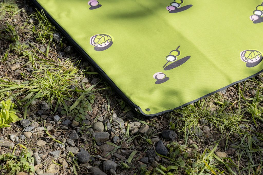 レジャーシート(ピクニックシート)に必要な機能といえば、まずは「防水性」と「速乾性」。ぬれた芝生でも使用できるよう、シートの裏面は撥水加工が施されたものを選ぶようにしましょう。
