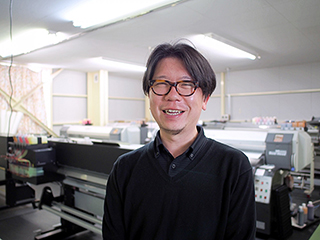 カズマがデジタルプリント機を導入するタイミングで入社して以来、デジタルプリント事業一筋。『DR!UM』のカーテン生産に欠かせない一人です。